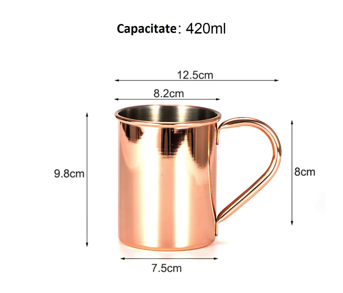 This 420 ml copper mug is more than just a drink container; it is a true tool for health improvement, inspired by Ayurvedic traditions. Crafted from pure copper, this mug not only adds a touch of style to any meal but also offers remarkable therapeutic benefits. With its elegant and durable design, it is perfect for serving cold drinks or for ionized water treatments, naturally taking care of your well-being.